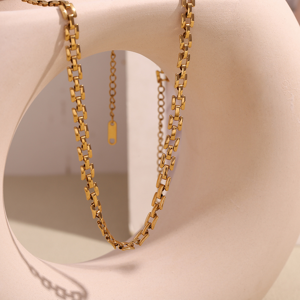 E.B.belle Square Handmade Chain Necklace 316L Stainless Steel Jewelry 18K Gold Plated Necklaces for Women