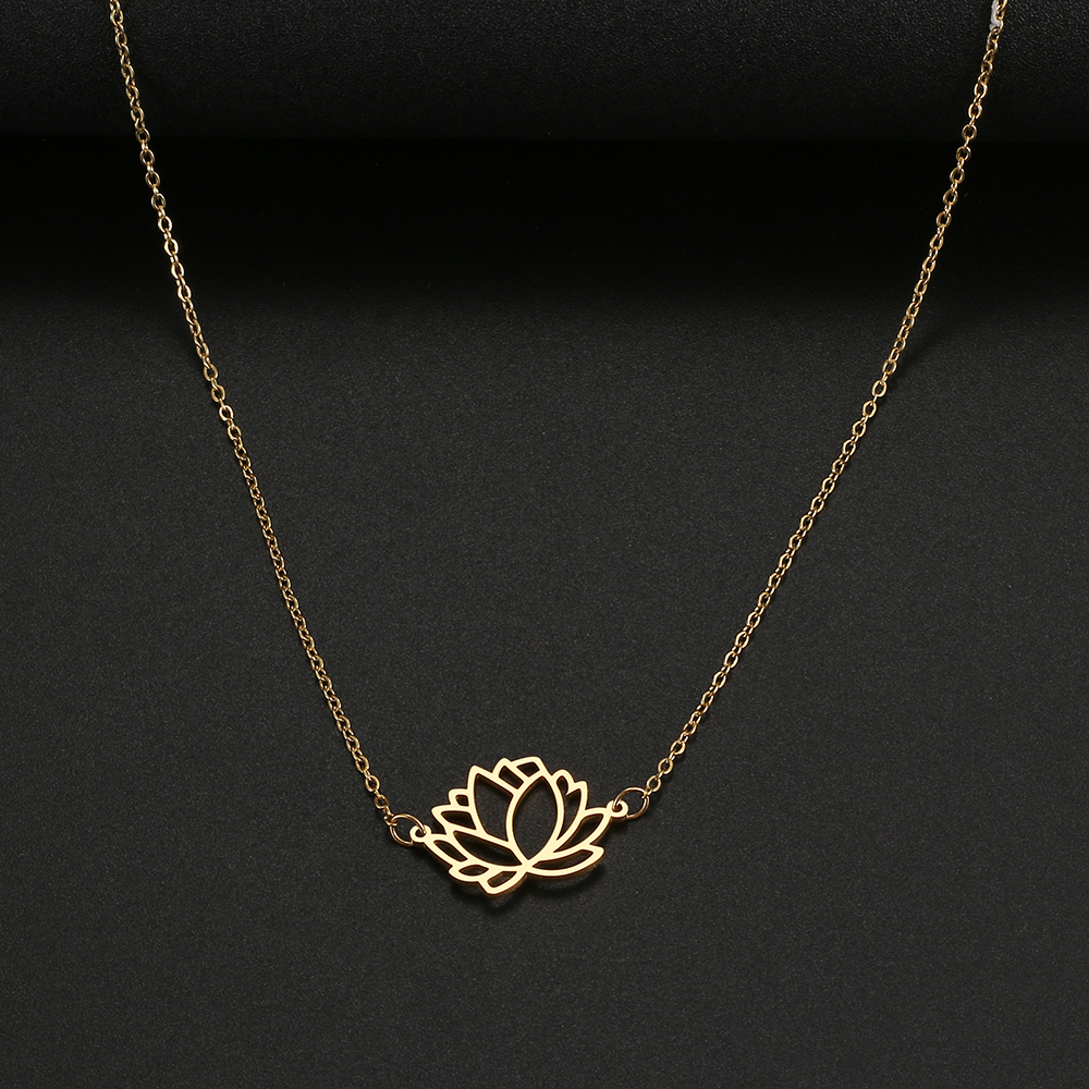 Stainless Steel Necklaces Flower Lotus Shape Pendant Chain Yoga Chakra Necklace For Women Jewelry Party Friends Gifts Gold-45cm – Sumsfashion